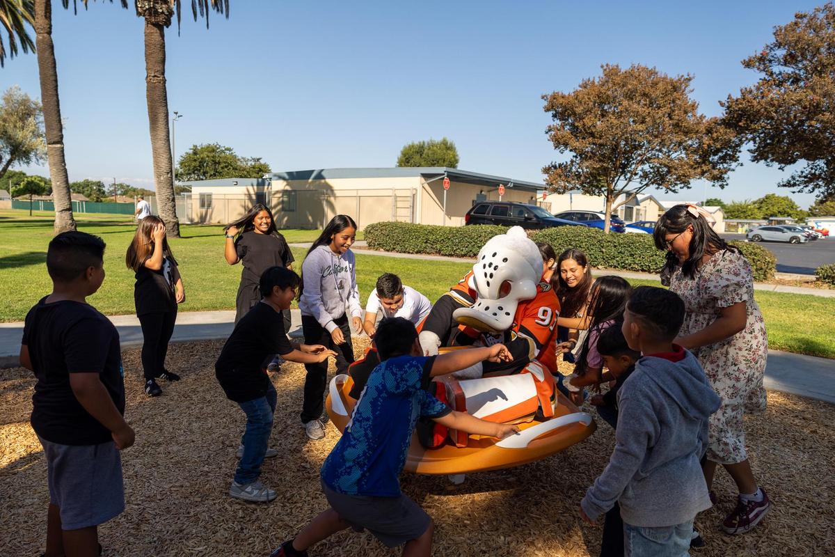 Wild Wing joined in the fun, racing across the structures, playing games with the students, and even taking a few trips down the slides, much to everyone’s delight. Made possible through the support of the Kaboom Organization, the Anaheim Ducks Foundation, and the City of Anaheim, the playground has quickly become a favorite destination for children and families. Wild Wing’s return visit was a perfect way to honor the community spirit and teamwork that made this exciting project a reality.