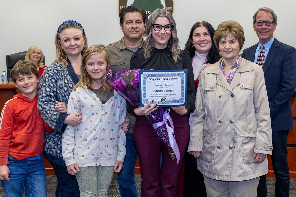 The Board also recognized Katrina Peterson, Systems and Network Technician Lead, as the Maintenance, Operations, Transportation, and Facilities (MOTF) Department Employee of the Month. Ms. Peterson was additionally honored as the Magnolia School District Classified Employee of the Year for 2025 and will advance to the county-level competition.